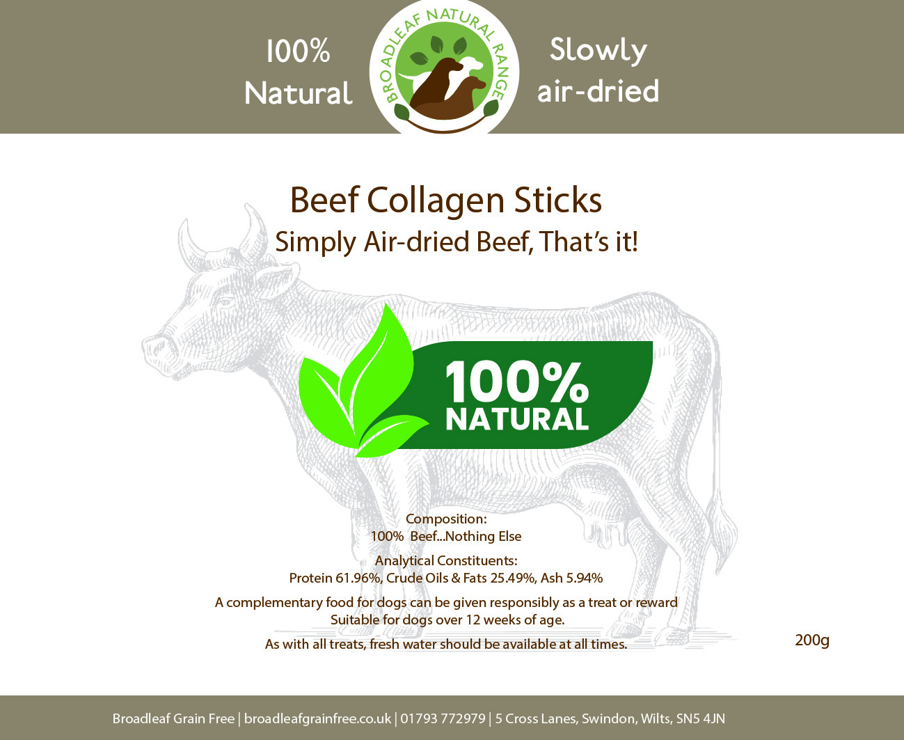 Beef Collagen Sticks are made from the inner layer of skin, which is simply air-dried.